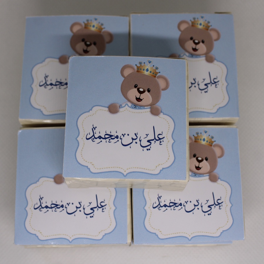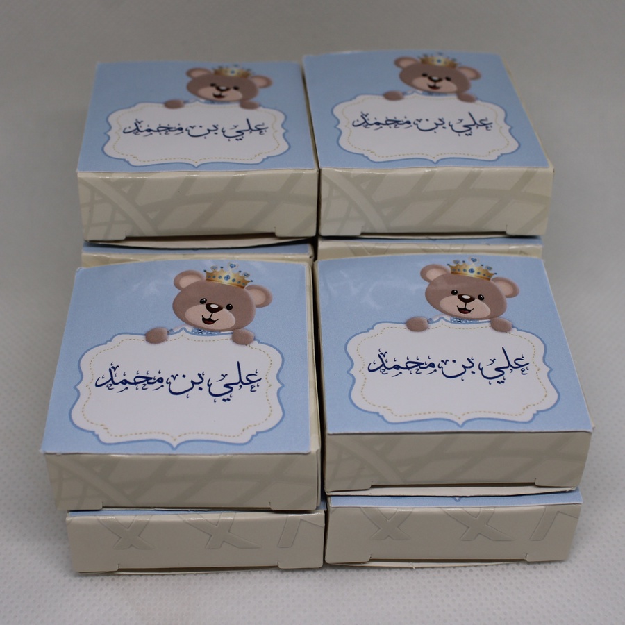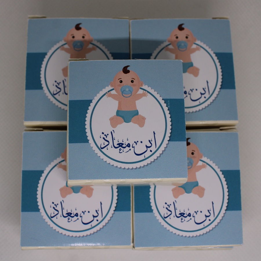 أضف لمسة فخامة وتميّز لمناسبة قدوم البيبي مع مطبقانيات بيبي ولد بطباعة الاسم، مصممة بعناية لتقديم الحلوى والتوزيعات بأسلوب راقٍ وشخصي.