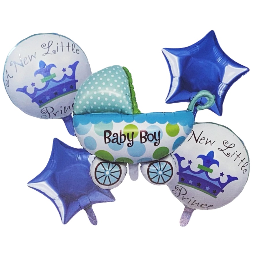 مجموعة بالونات فويل فاخرة ومبهجة مصممة خصيصًا لحفلات استقبال المواليد (Baby Shower) وتزيين غرفة الطفل. تتميز المجموعة بتصميم متكامل يجمع بين اللونين الأزرق والأبيض والأخضر الفاتح، وهي الطريقة المثلى للإعلان عن قدوم صبي.