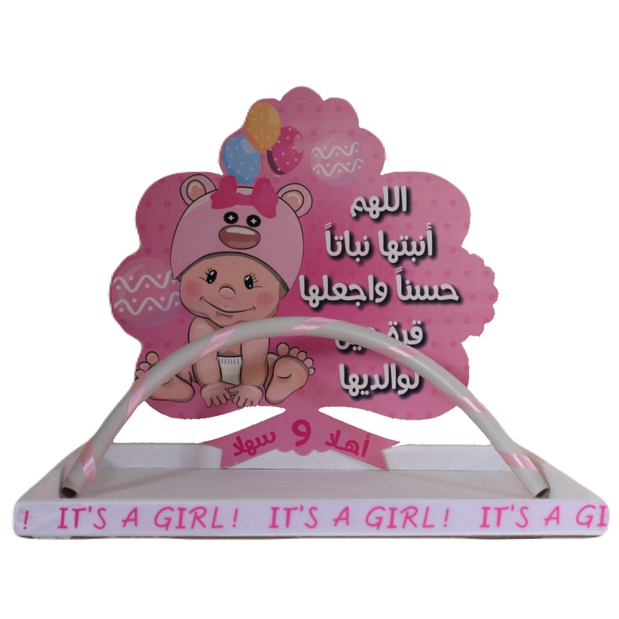 تأتي بمقاس 38×30 سم لتكون مثالية لتقديم القهوة، الحلويات، أو الهدايا التذكارية في مناسبات استقبال المولودة الجديدة.