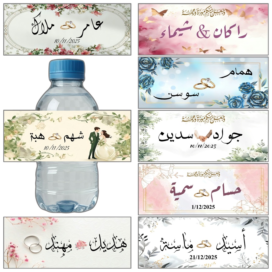 ستيكرات بتصاميم فاخرة وناعمة تضيف لمسة رومانسية على علب الماء وتعكس أجواء الاحتفال الخاص بيومك المميز.