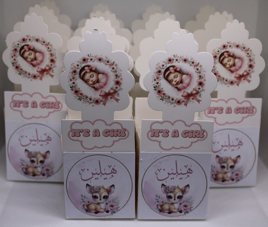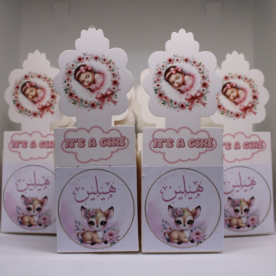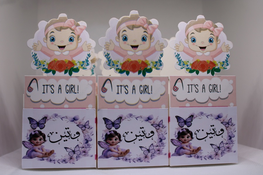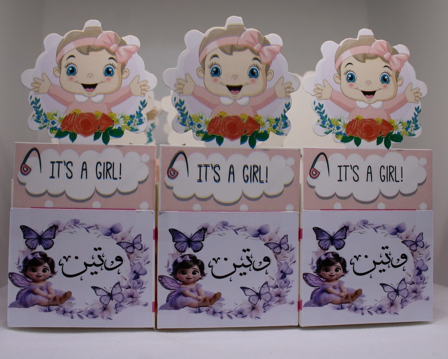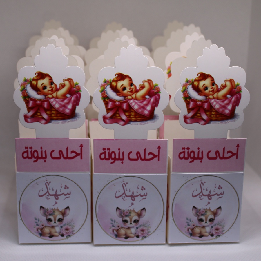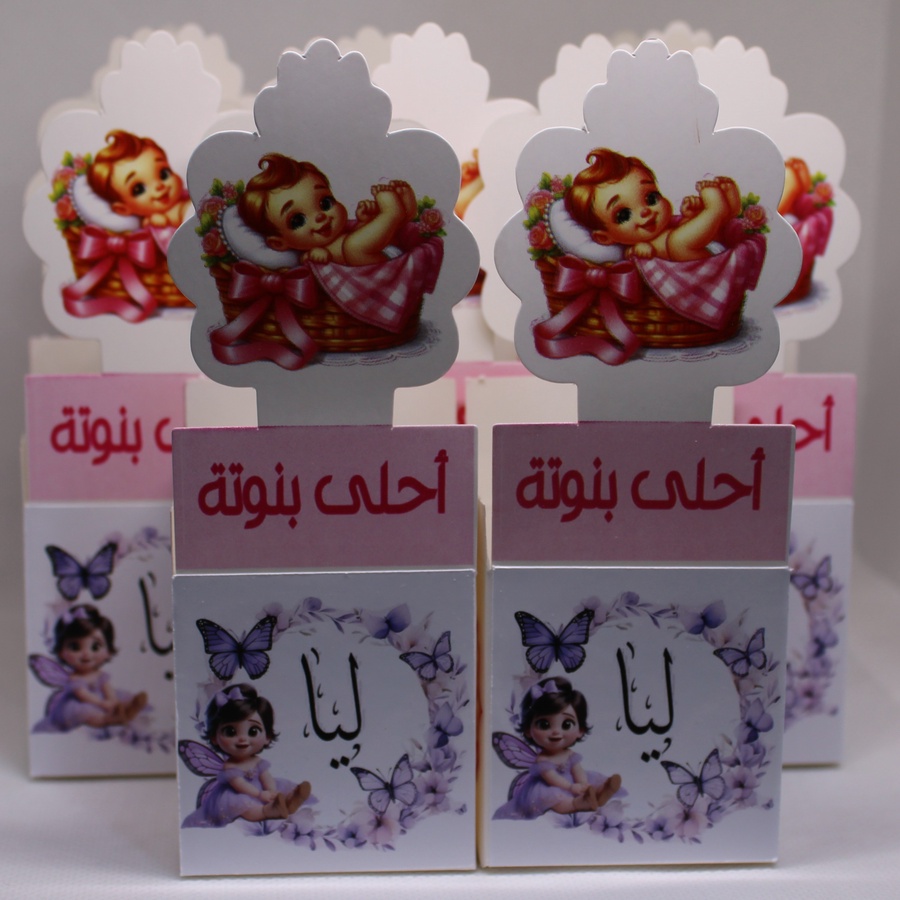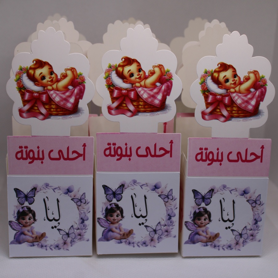 أضف لمسة فخامة وتميّز لمناسبة قدوم البيبي مع مطبقانيات بيبي بنت بطباعة الاسم، مصممة بعناية لتقديم الحلوى والتوزيعات بأسلوب راقٍ وشخصي.